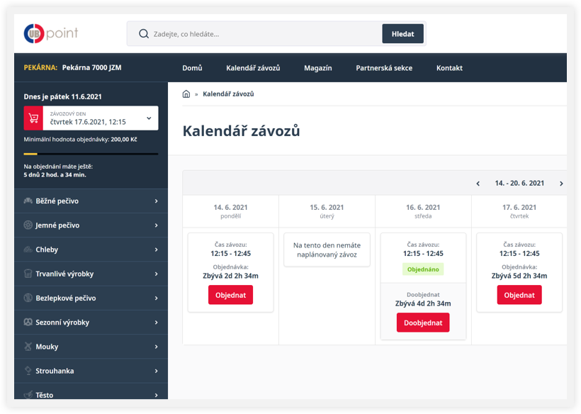 Velkou přidanou hodnotou v zákaznické sekci je pro velkoobchodní zákazníky bezpochyby kalendář závozů, ve kterém mohou zjistit volné sloty jednotlivých závozových dnů. Tato funkce nabízí také rychlou kontrolu a přehledné místo, kde si mohou ověřit, na které dny už mají objednáno (až 10 dní dopředu).