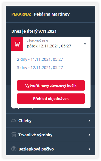 Další zajímavou funkcí jsou oddělené košíky, tzv. závozové košíky, ze kterých si velkoobchodní partner může pro každý závozový den vytvořit samostatný košík. Těchto košíků s různým typem zboží lze založit více (například na úterý lze objednat rohlíky a na středu housky).