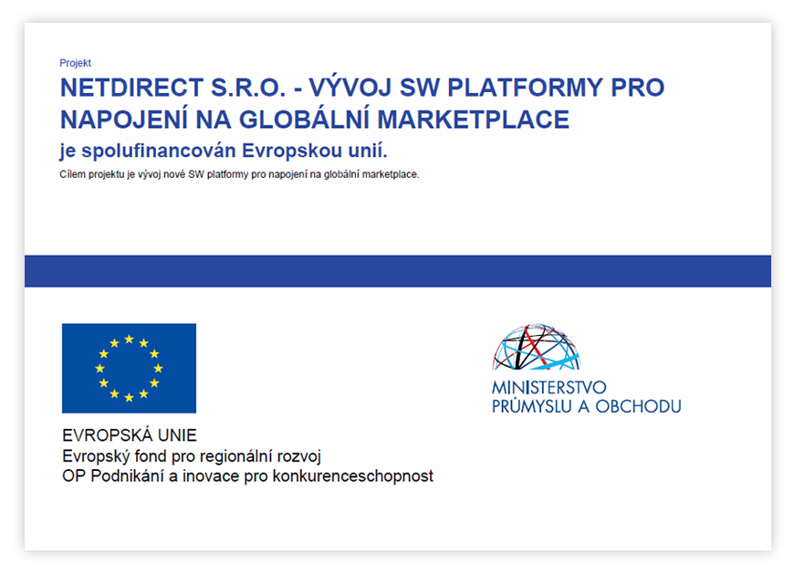 Projekt „NetDirect s.r.o.“ - Vývoj SW platformy pro napojení na globální Marketplace reg. č. CZ.01.4.04/0.0/0.0/16_076/0009425 je spolufinancován Evropskou unií.