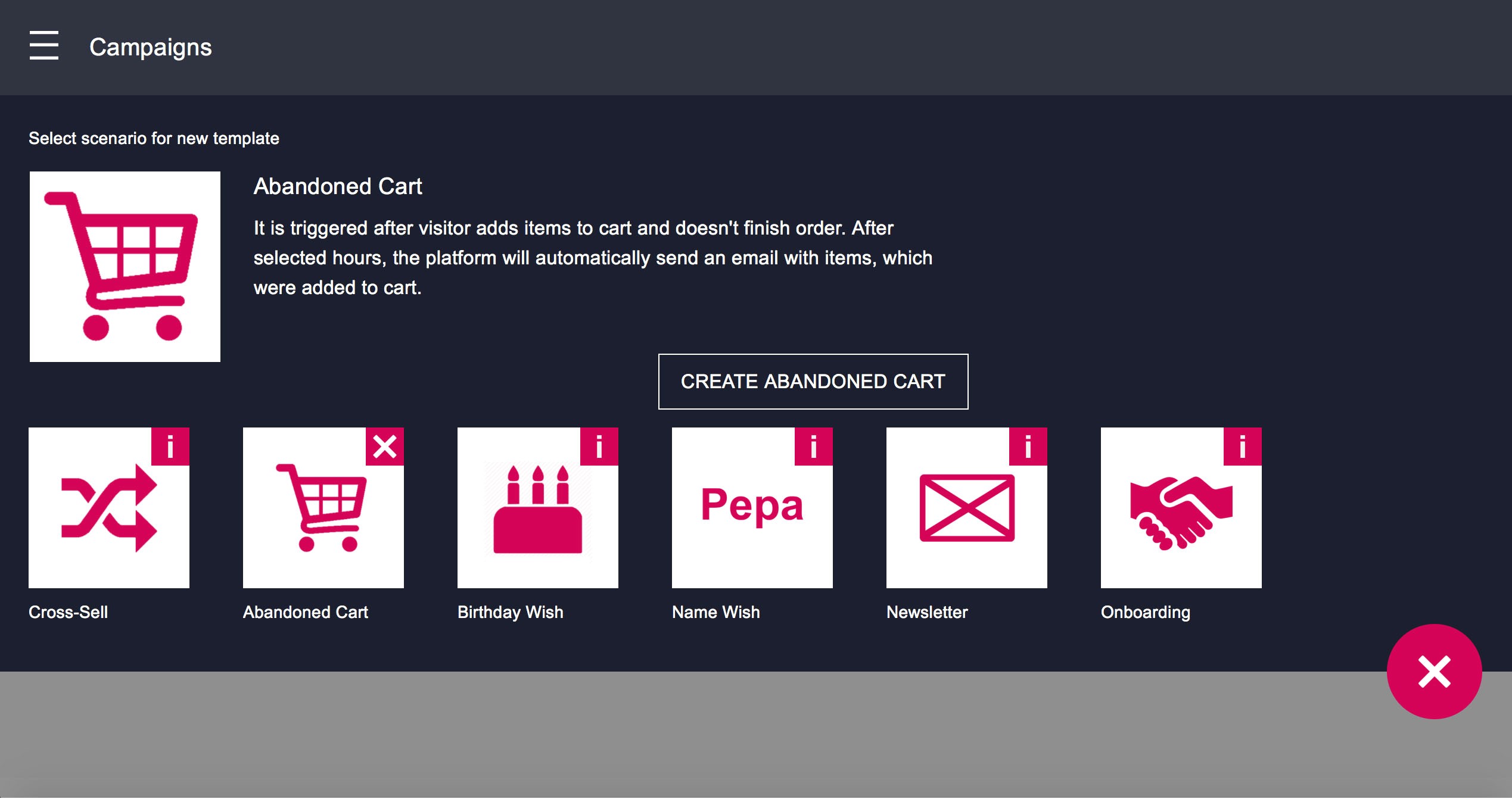 Pokud zákazník přidá zboží do košíku, ale nákup nedokončí, systém mu automaticky nákup připomene. Průměrně 70 procent nákupů takto zůstává nedokončených. Při správně zvoleném e-mailu lze takto získat 4 až 5 procent ztracených objednávek zpět.