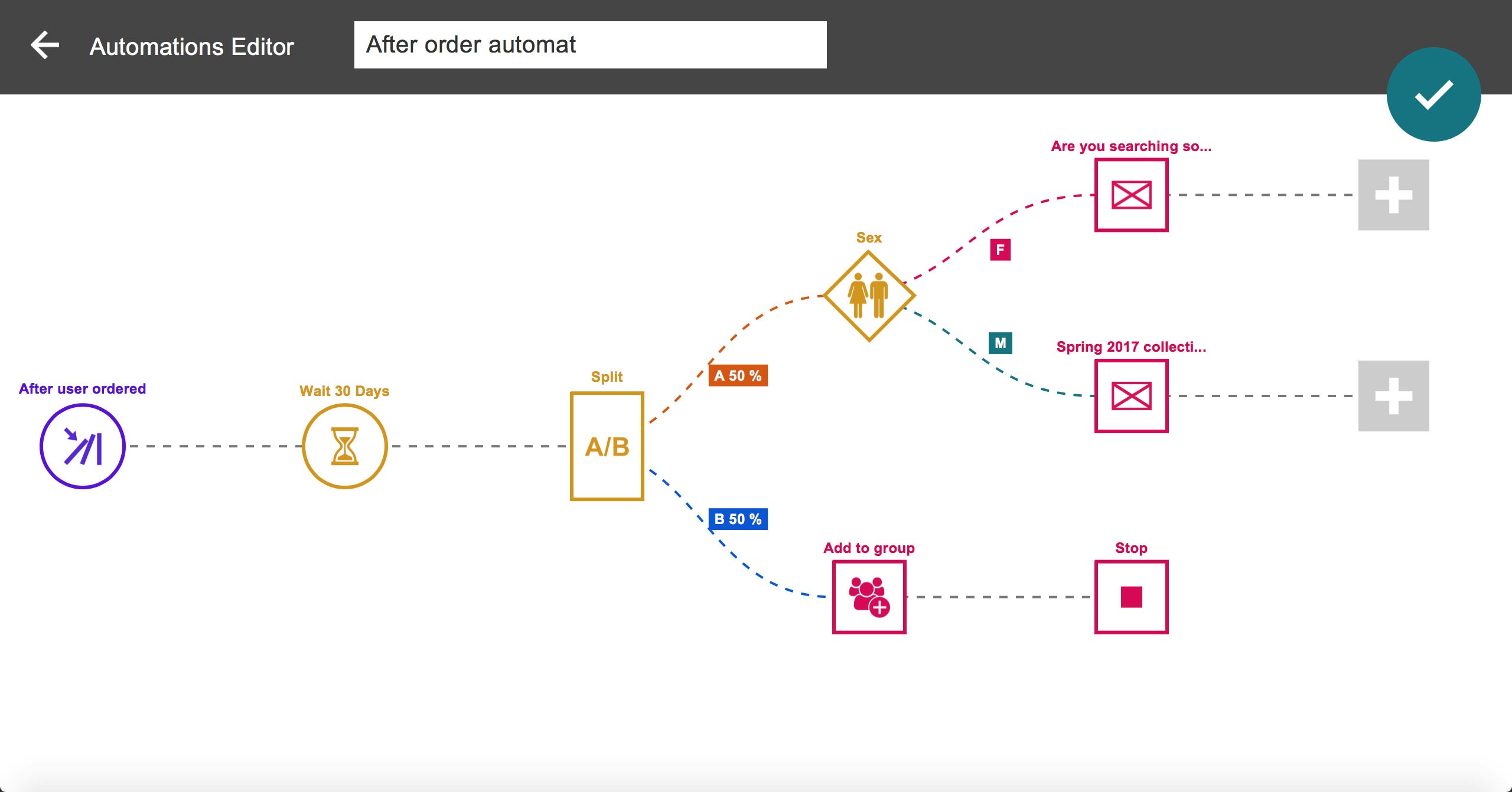 Pokud si chcete s automaty pohrát sami, můžete vyzkoušet automatový tvořič. Po objednávce počkej 1 měsíc a s pravděpodobností 50 procent pošli jednu kampaň, s pravděpodobností 50 procent pošli jinou, počkej jestli si jí zákazník přečte, udělej tohle nebo něco jiného. Vytvořit lze cokoliv.