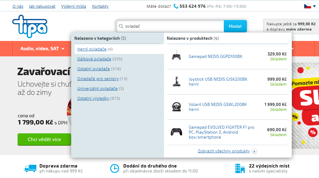 „Zavedením interního vyhledávání s našeptávačem na projektu Tipa.eu došlo ke zvýšení počtu objednávek téměř o 10 % a konverzního poměru e-shopu až o 20 %.“