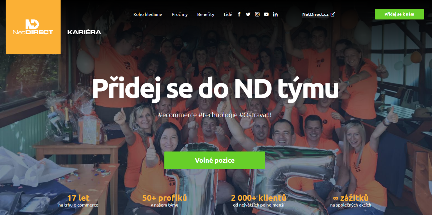 Naše přání je prosté. Věříme, že návštěvníci náborového webu odejdou s pocitem, že je NetDirect prima firma.