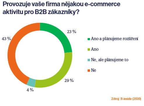 Klíčovou roli hraje v současném e-commerce světě také B2B portál (B2B e-shop), který využívá až 31 % dotázaných podniků. Jedná se o chytrou online platformu, která zajišťuje B2B zákazníkům komfortní nákupní zkušenosti a majitelům portálu
