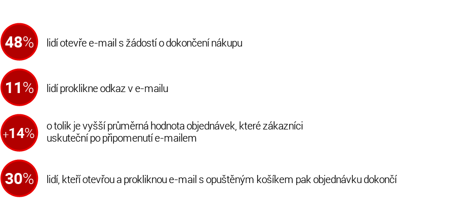 První připomínkový e-mail se doporučuje zaslat do 2 hodin od opuštění košíku a druhý do 24 hodin.